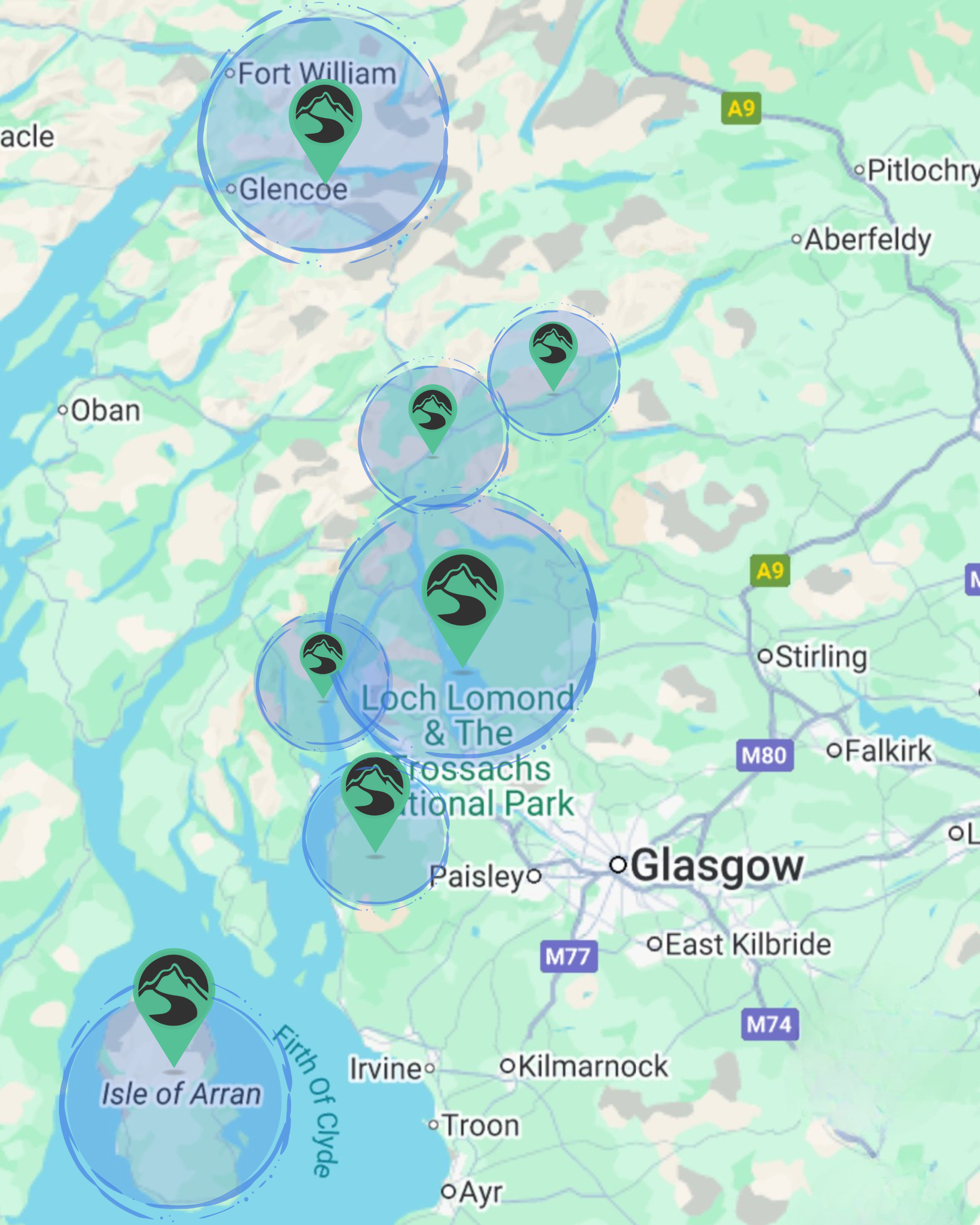 We are fortunate to have Loch Lomond and the Trossachs on our doorstep and also have a real soft spot for the equally close but less well known Clyde coast. With its hidden glens bursting with charm and draped in rare Atlantic rainforest.